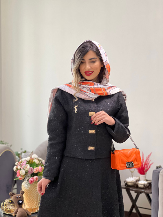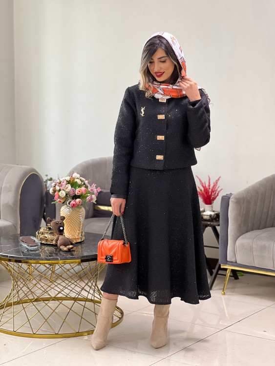 جنس کت شانل پاییزه است و داخل کت و دامن کامل استرکشی شده