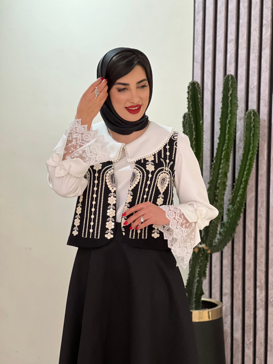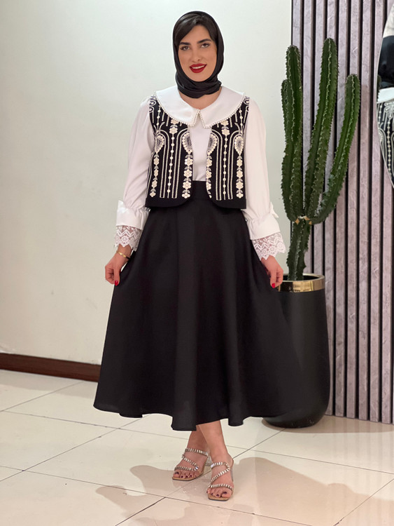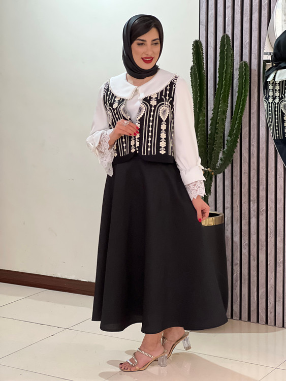 ست شومیز و وست و دامن رنانه مدل آی گل