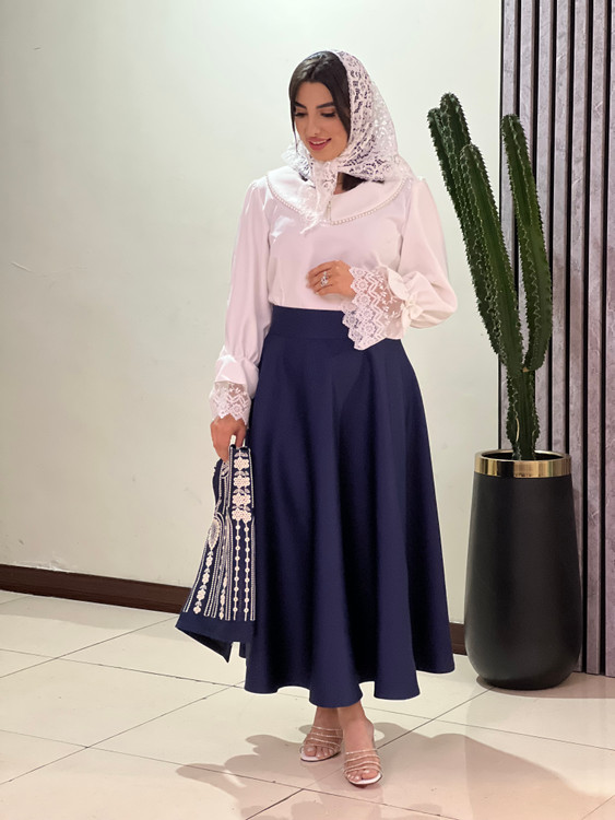جنس شومیز و دامن کرپ مازراتی اعلاست و اصلا تن نما نیست