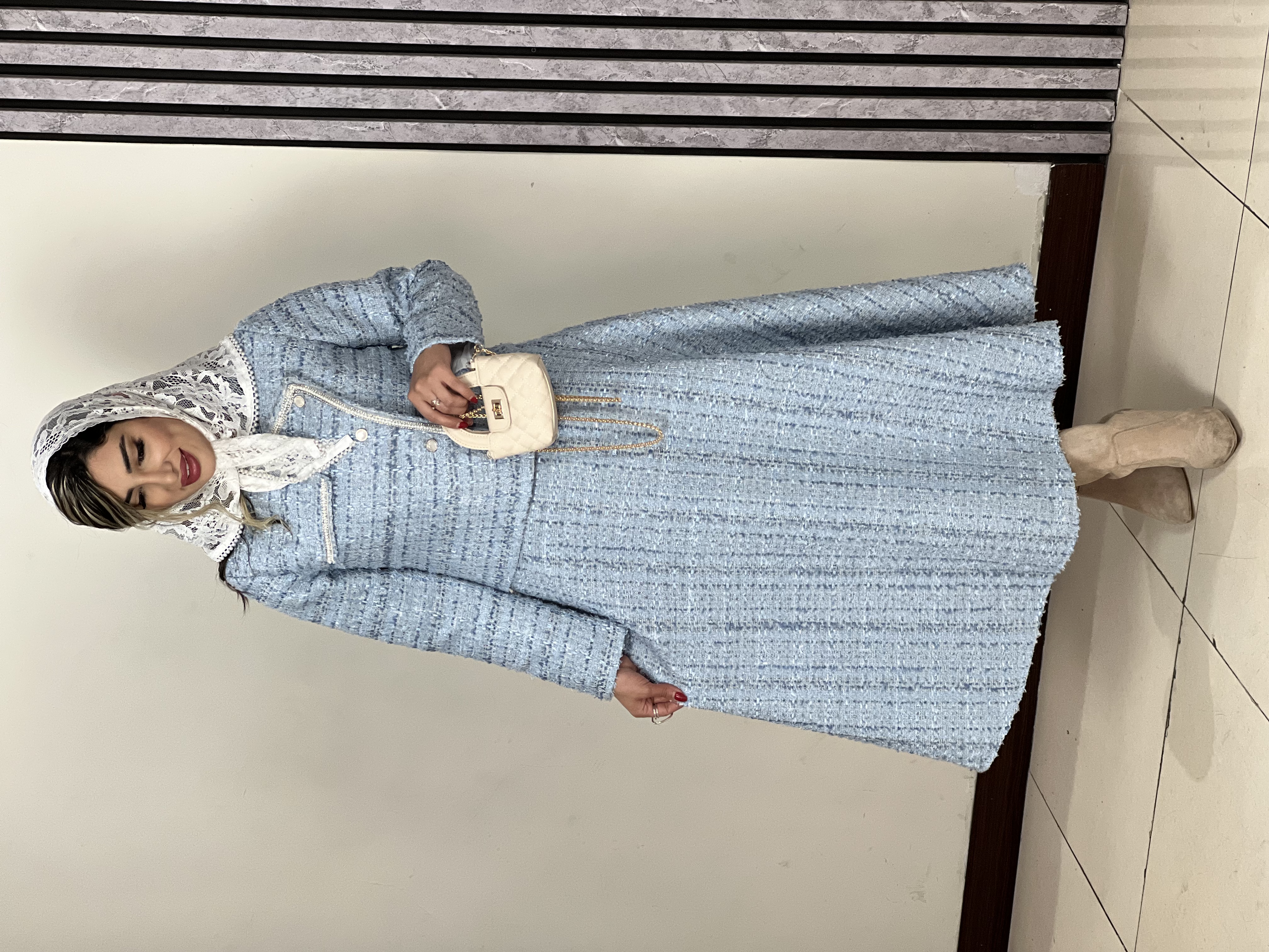 جنس کت و دامن شانل پاییزی ترک است و داخلش لایی کوبی و آسترکشی شده