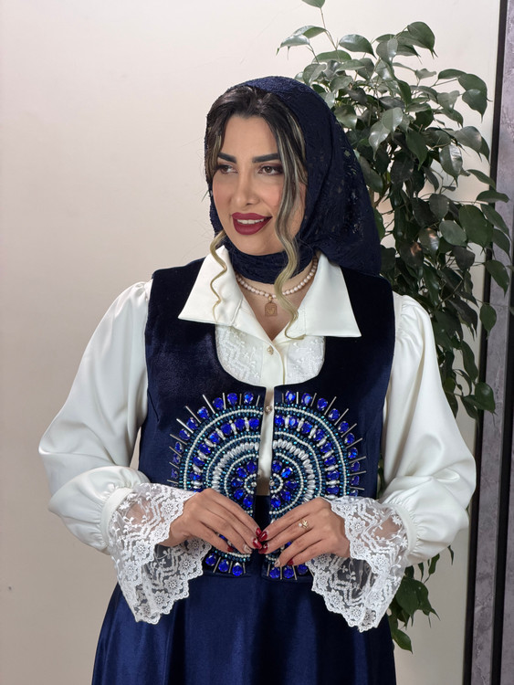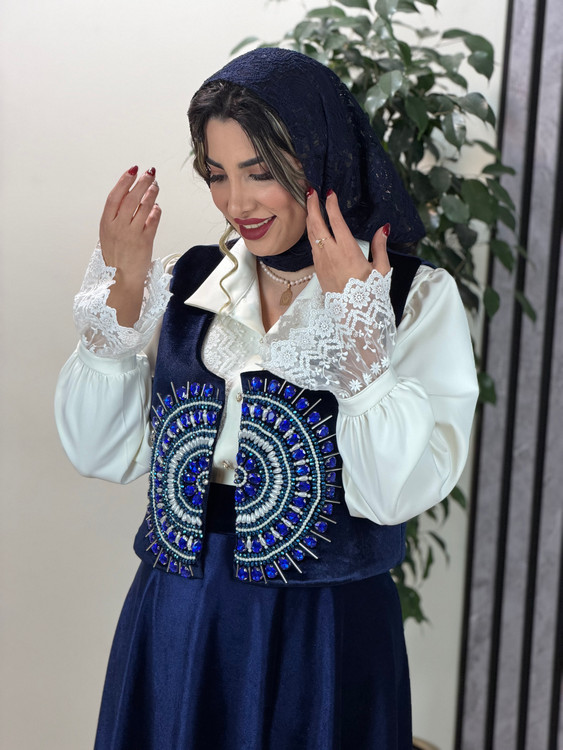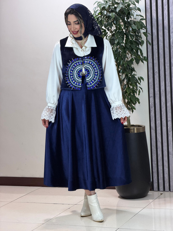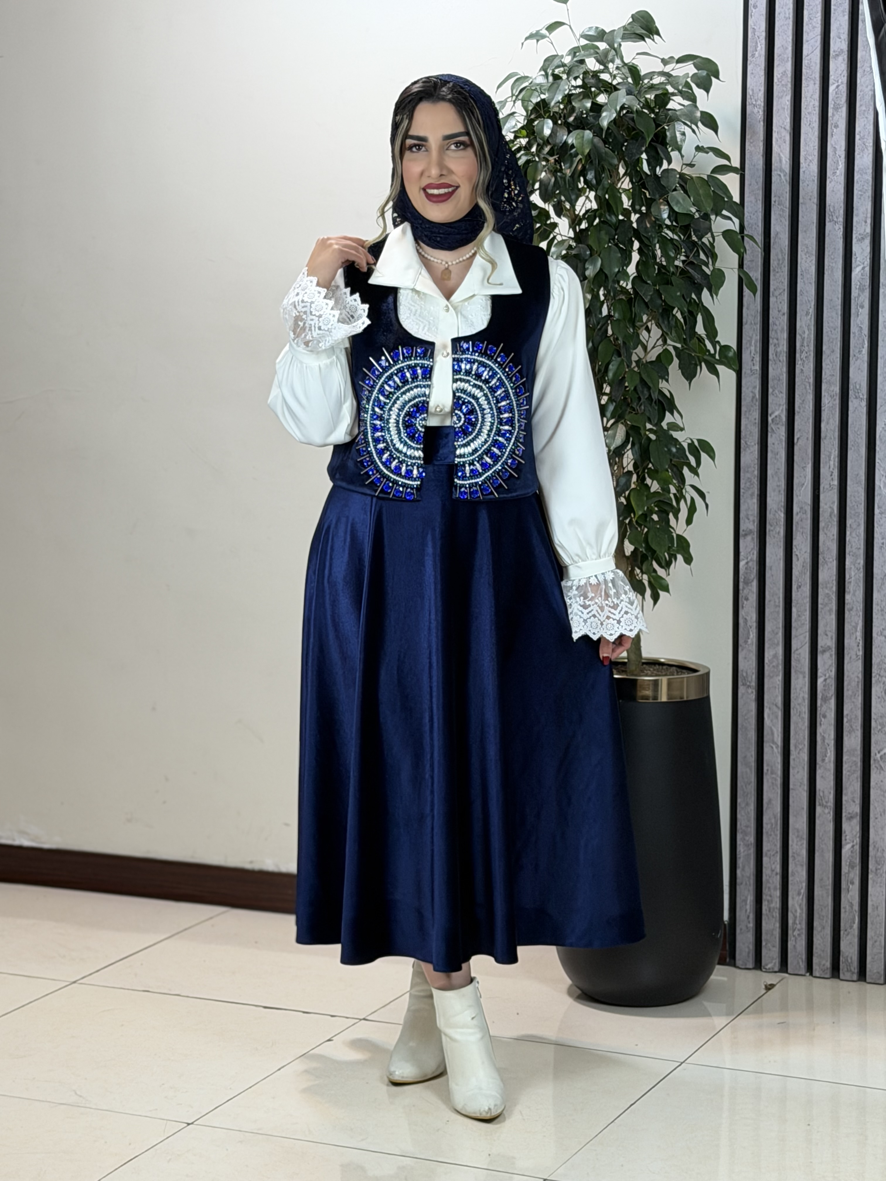 ست جلیقه و شومیز و دامن مخمل زنانه مدل ماهلی